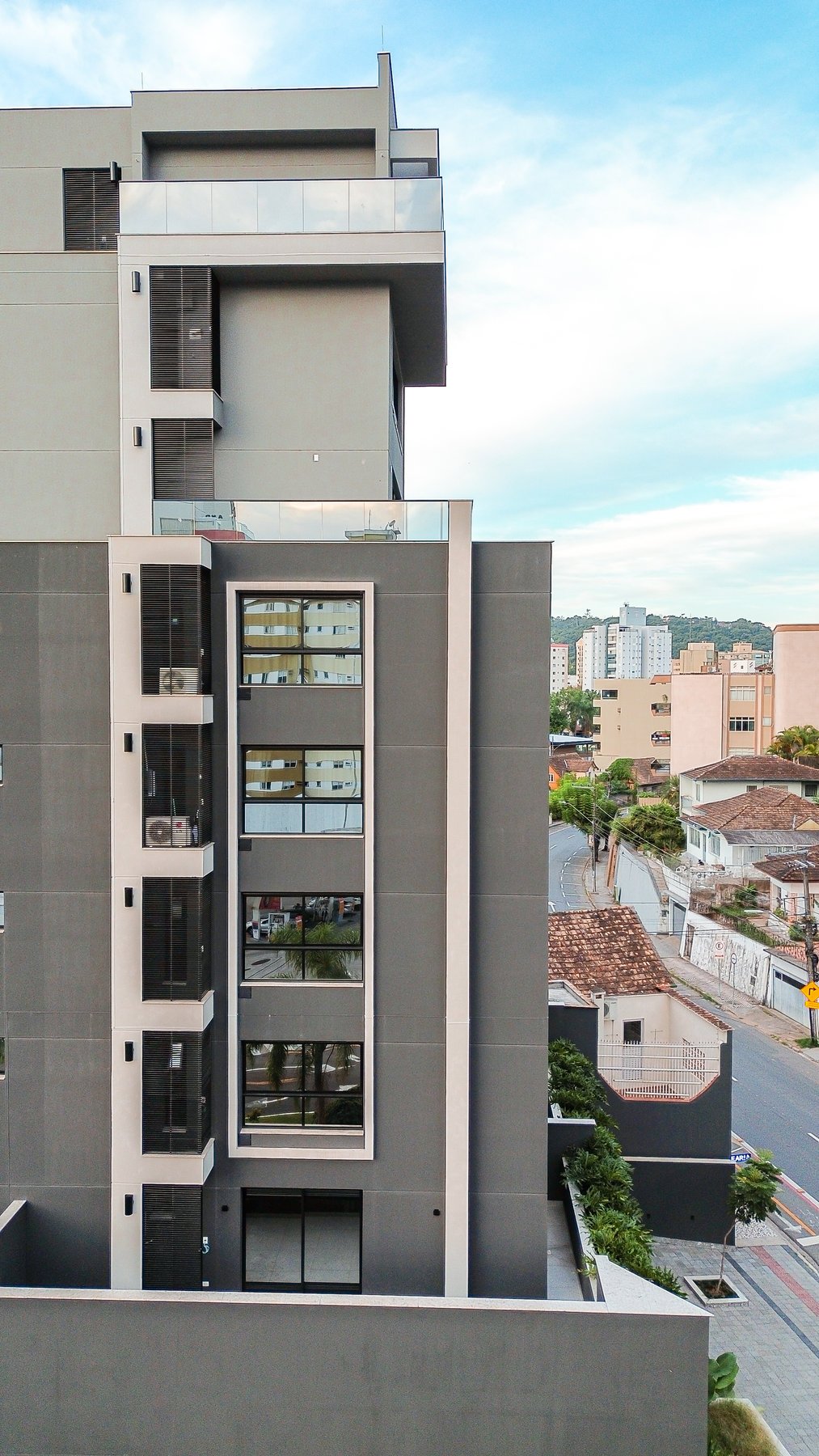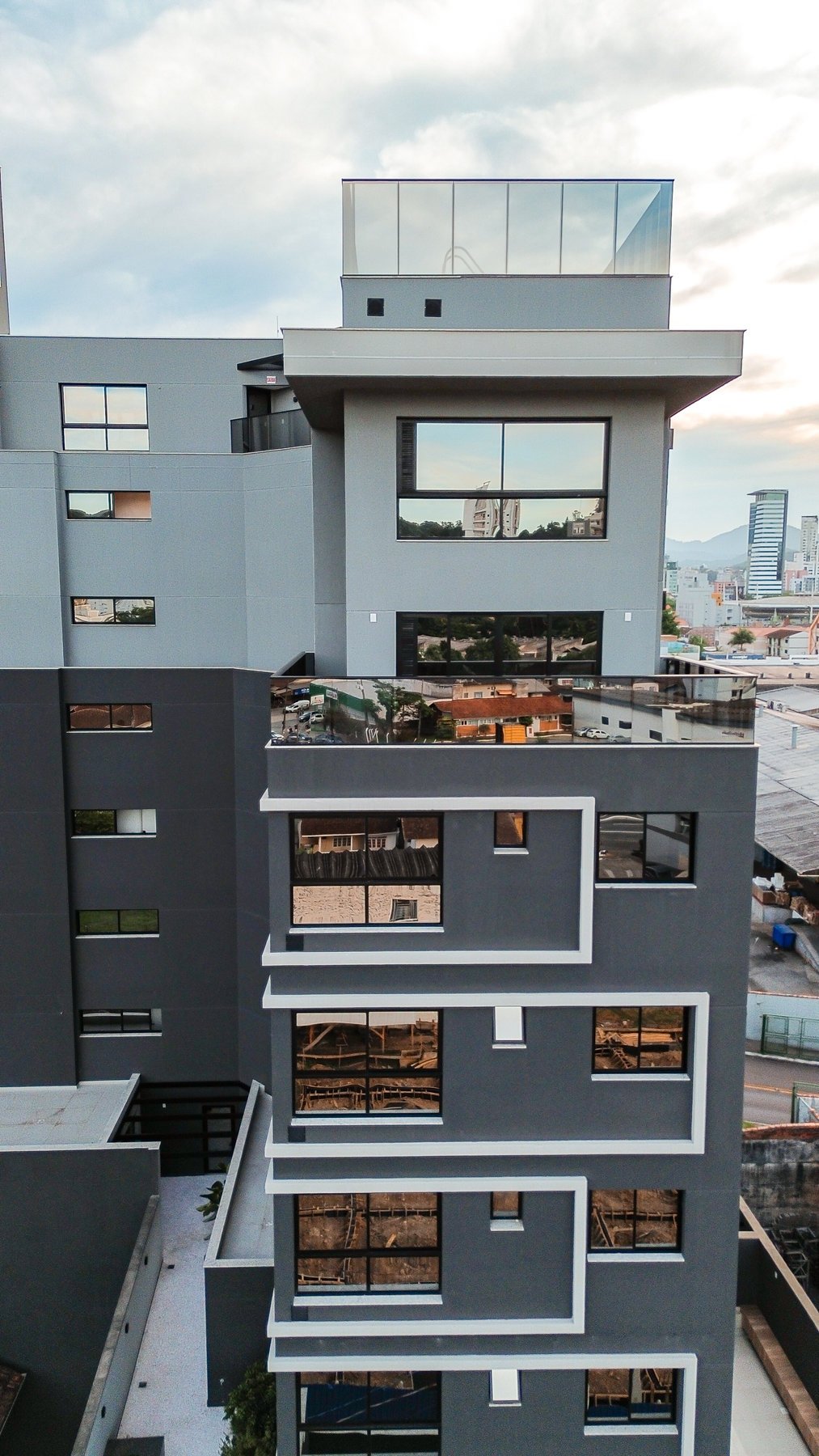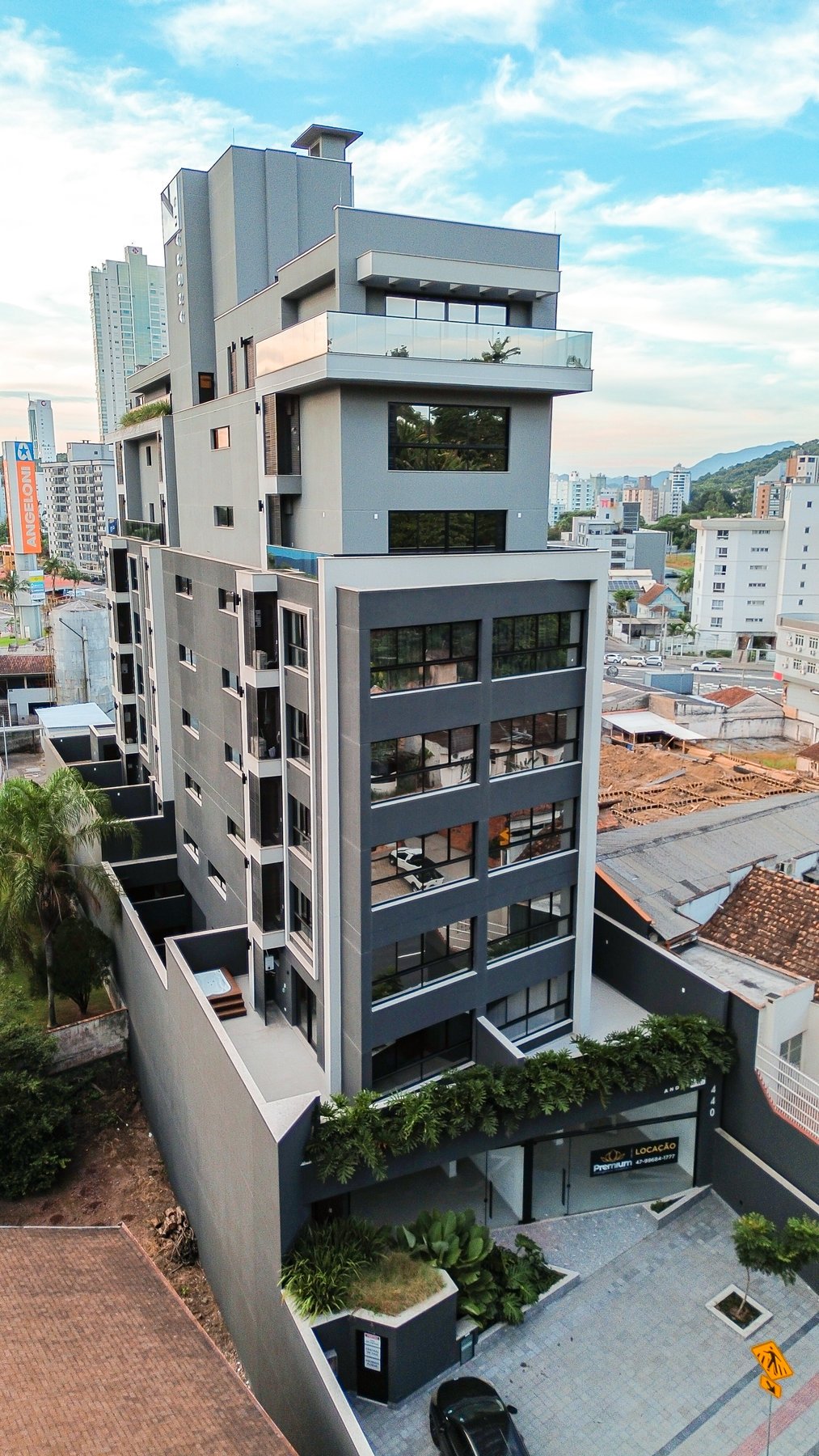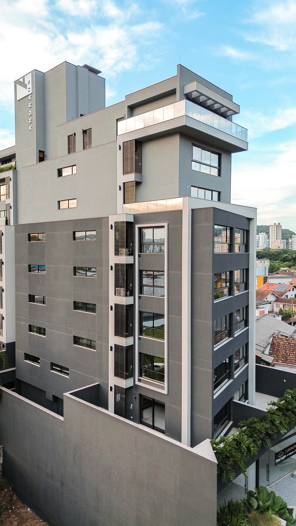 O projeto Carbono Lofts foi pensando em maximizar o uso de um terreno de 1.050 m² em formato de L com declive. Com o objetivo de oferecer mais de 50 unidades de apartamentos loft e duas lojas, cada uma com uma vaga de garagem, o design inovador do prédio escalonado nos últimos andares foi essencial. Elementos como molduras, marquises e pergolados na fachada foram utilizados para disfarçar o escalonamento e criar detalhes arquitetônicos únicos. A paleta de cores escuras, vidros espelhados e detalhes em tons claros, além de um jardim vertical, conferem ao edifício um visual moderno e sofisticado.
