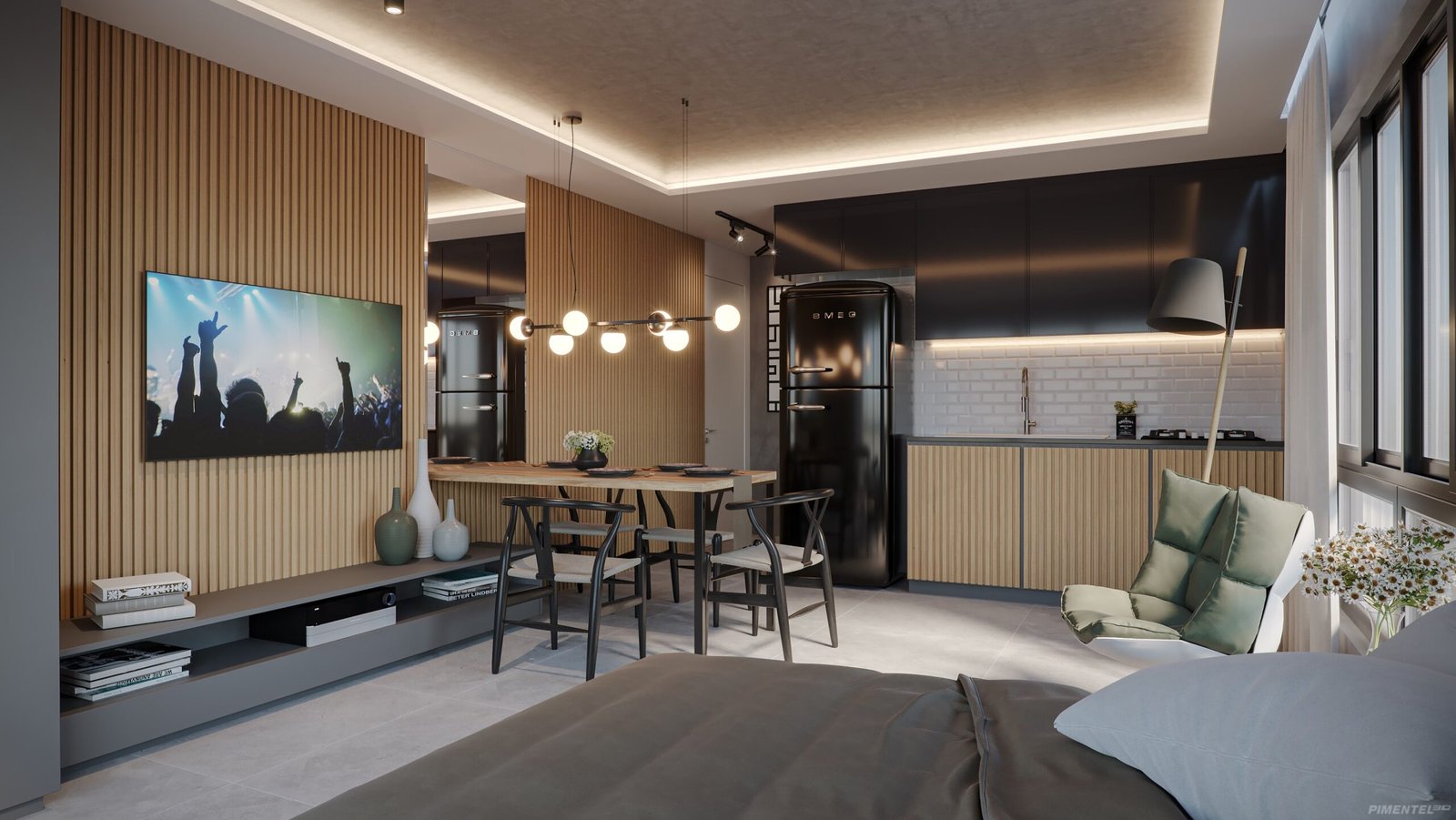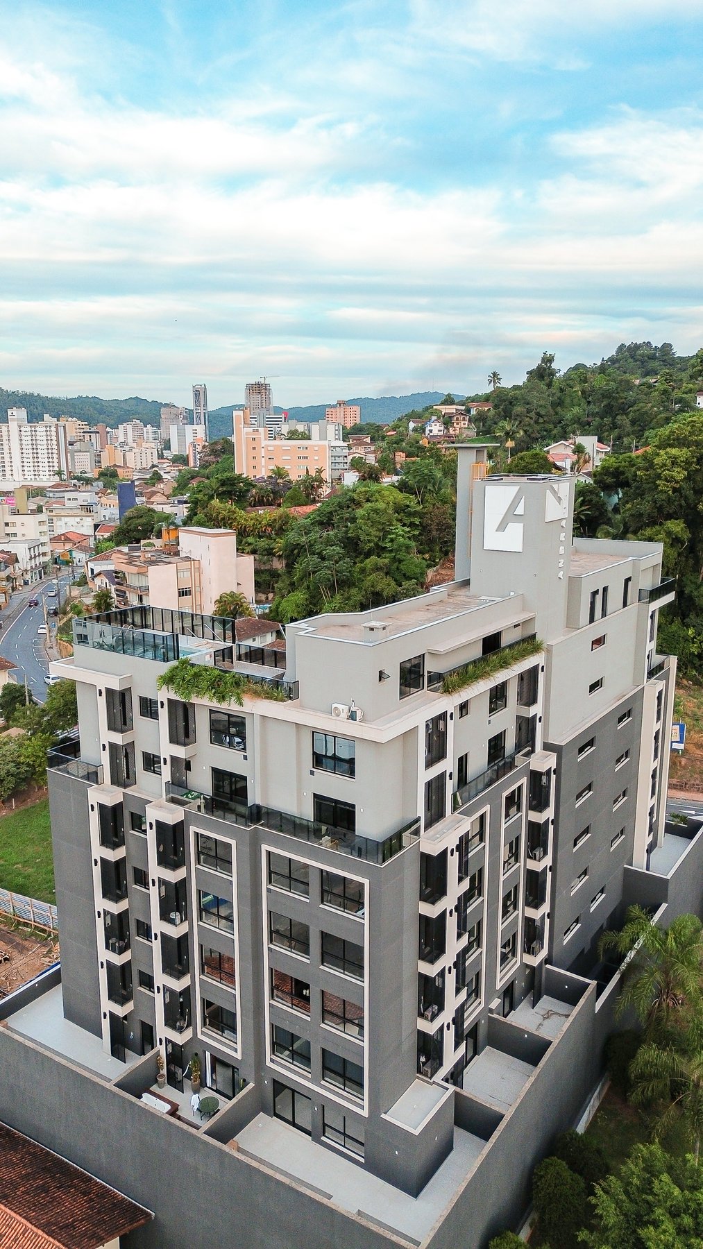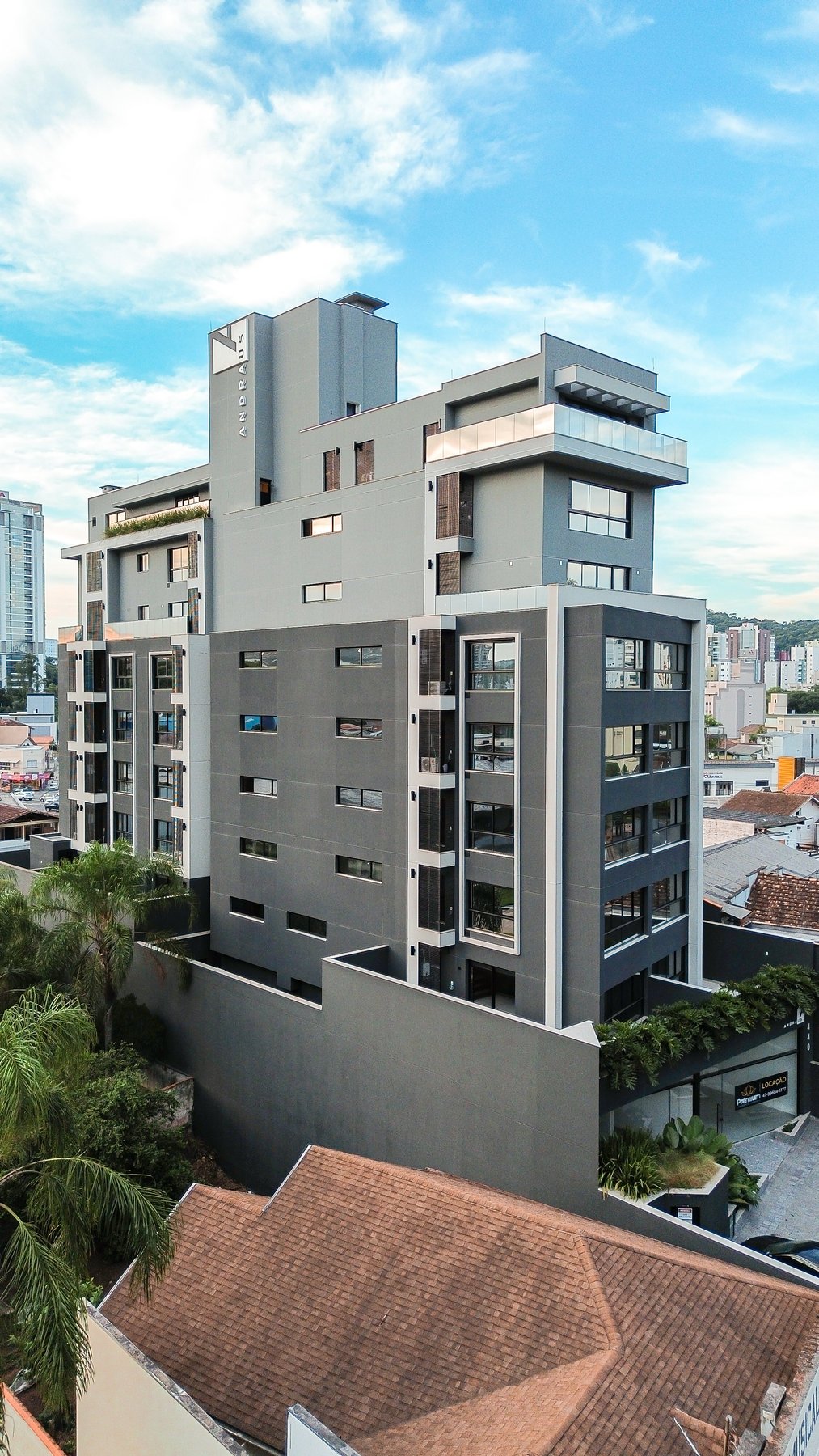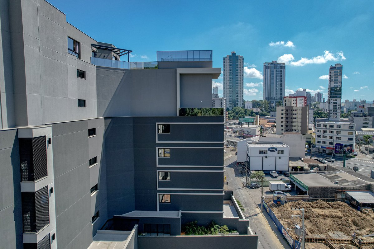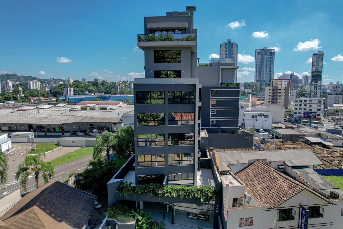 A área de lazer, localizada no rooftop, oferece uma experiência completa com sala de jogos, pub, praça do fogo, piscina, banheiros de apoio, academia, coworking, lavanderia do condomínio e horta. O projeto superou as expectativas, resultando em 59 apartamentos lofts, incluindo opções de dois dormitórios (double lofts), além das lojas e uma área de lazer excepcional.